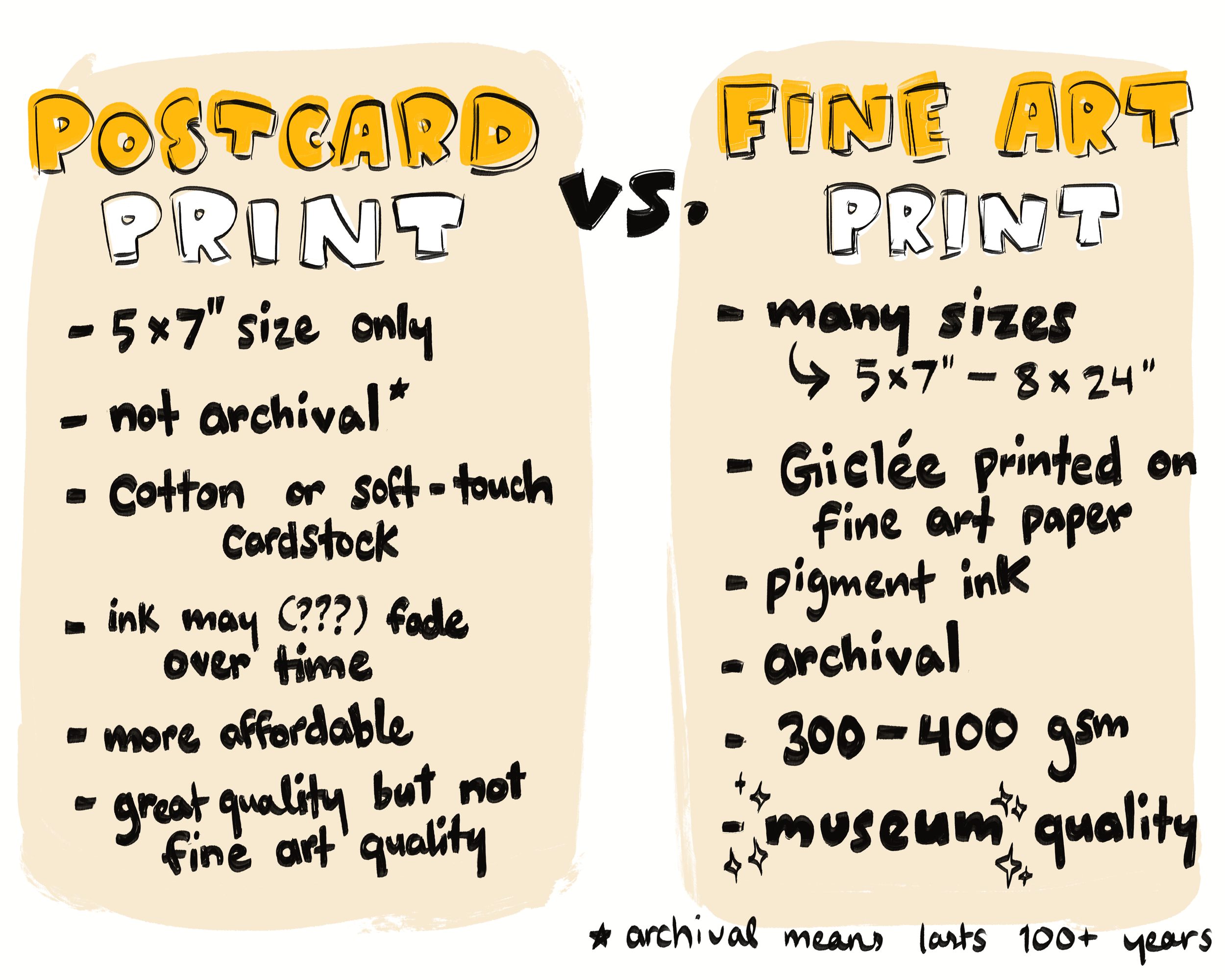 Fine art Giclee print on 330 gsm hot press matte paper. Each print is signed on the back by yours truly!